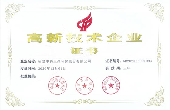 公司已获得国家高新技术企业、福建省重点上市后备企业、福建省专精特新中小企业、福建省知识产权优势企业、福建省法人科技特派员、第八届全国“母亲河奖”绿色贡献奖、中国乡镇污水处理案例等荣誉;目前公司已拥有发明专利和实用新型专利五十多项。