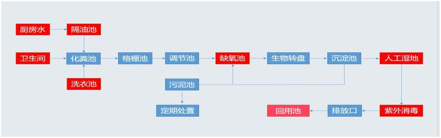 田底村处理站采用“生物转盘+人工湿地”工艺,设计规模为 100t/d。